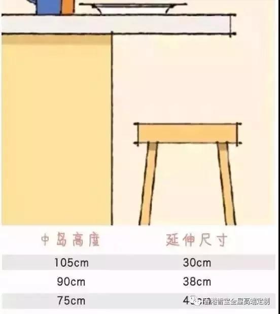 ②中島高度(依據(jù)椅子的高度)在90cm~105cm。
