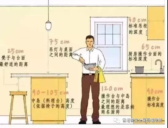 ⑥廚房操作臺面的標(biāo)準(zhǔn)深度65cm。