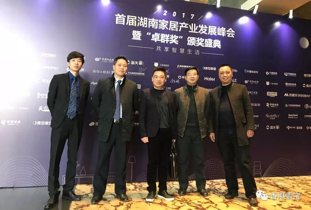 ▲2017年度卓群獎家居產(chǎn)業(yè)創(chuàng)新領(lǐng)導(dǎo)品牌頒獎,雪寶國內(nèi)營銷中心熊總(最中間)上臺領(lǐng)獎;
