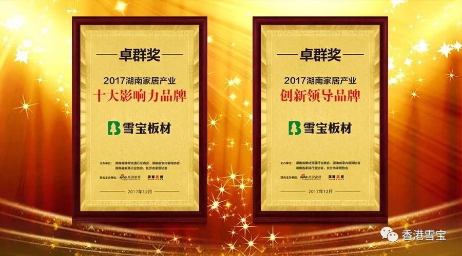 板材十大品牌雪寶板材榮膺2017年度家居產(chǎn)業(yè)卓群獎雙項(xiàng)殊榮!